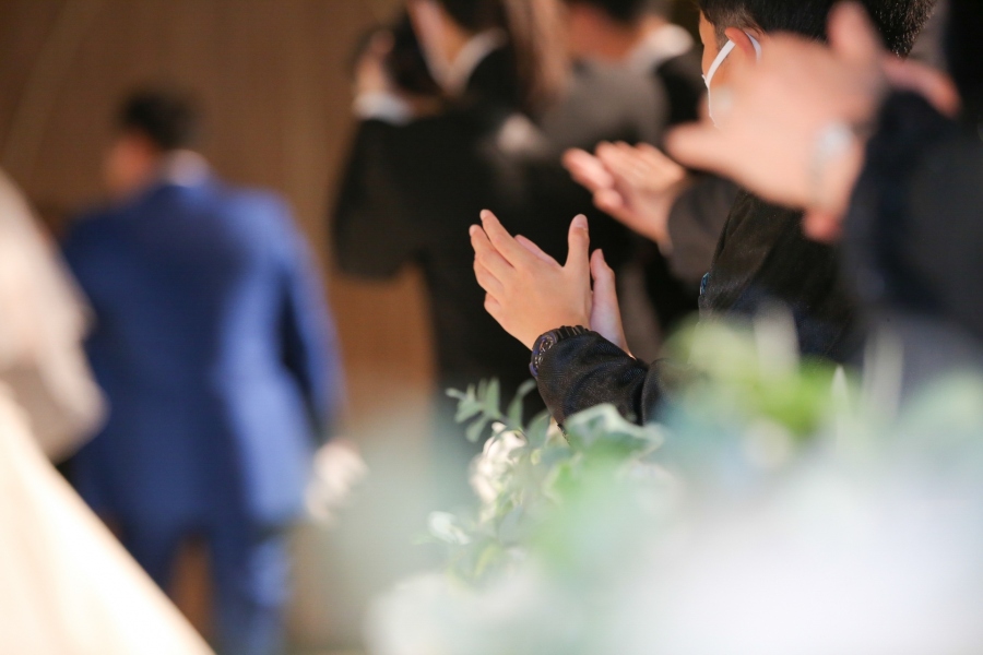 新郎新婦が皆さまからの祝福をいただきながら退場後、式場の外に出られたゲストから感動のお声が上がります。
