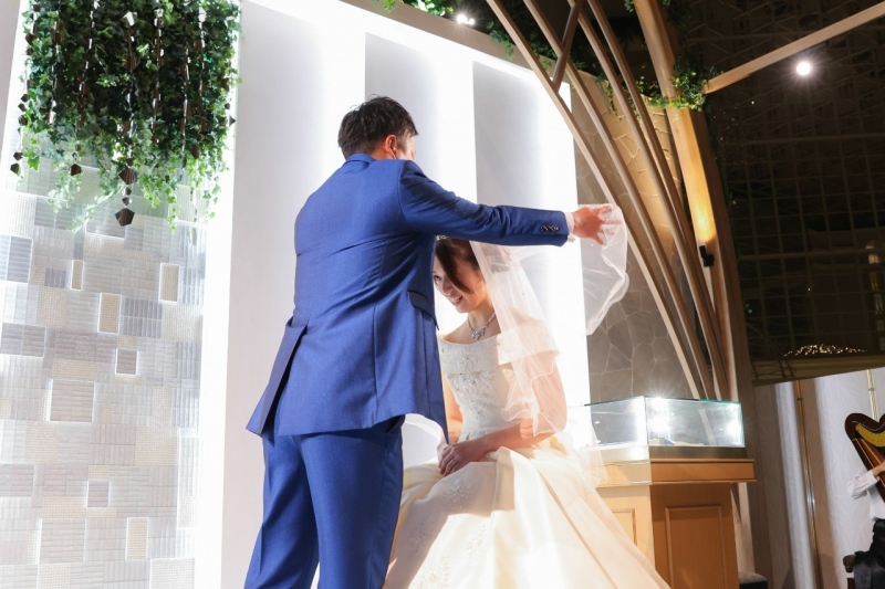 厳かに扉が開き、お母さまによるベールダウンで送り出していただきます。