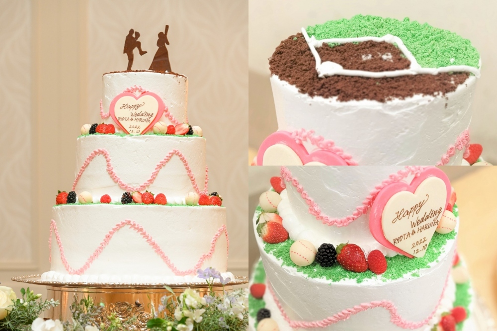 側面には野球ボールの縫い目模様や、たくさんの小さなボールがベリーとともにデコレーションされ、