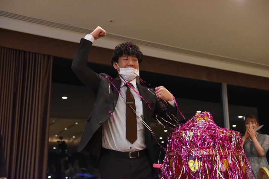 まるで花火のようにテープが飛び出した瞬間、会場には歓声が沸き起こります。