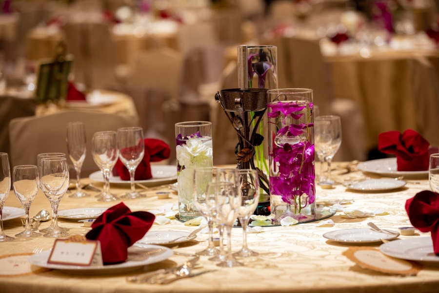 - ゲストテーブル装花も正統派のバンケットならではの上質で洗練された雰囲気で統一。