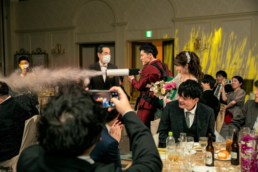 楽しいこと、サプライズが大好きな新郎新婦のアイデアが存分に発揮された披露宴に、ゲストも大満足の一日となりました。