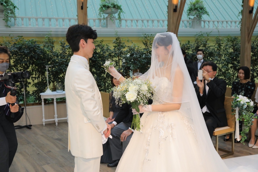 韓国と日本の文化に自分たちらしさをプラスした人前式で、愛する人、そしてかけがえのない大切な皆様へ、信頼と感謝の気持ちを伝えるお式となりました。