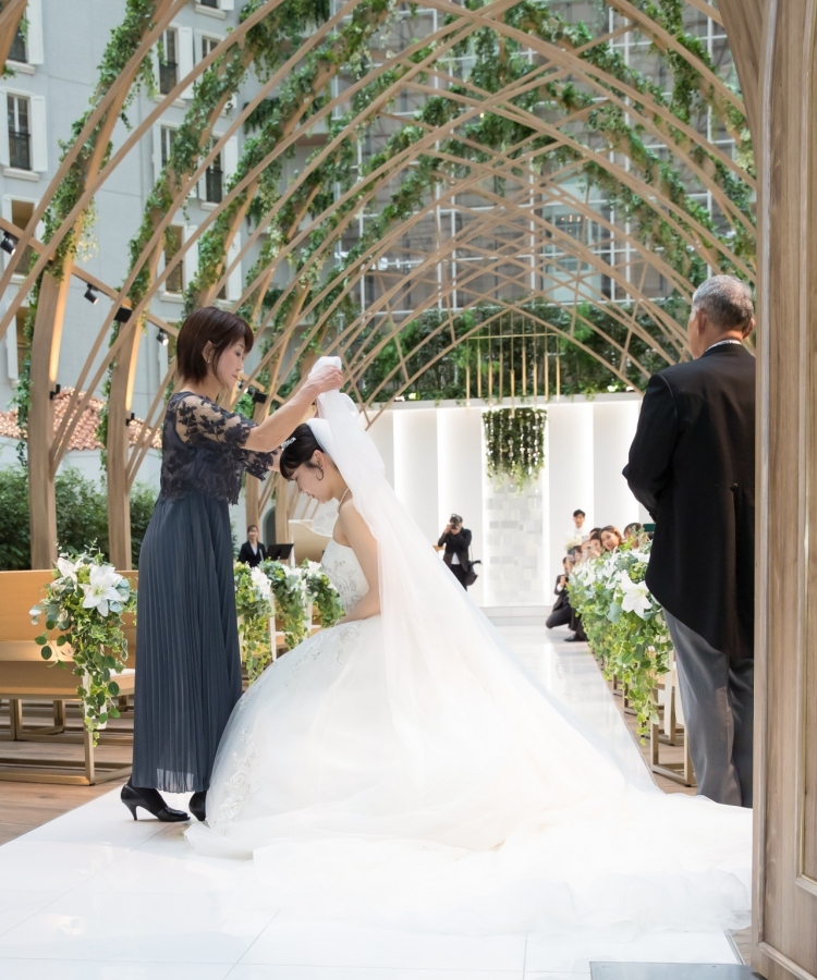 お母様のベールダウンで、バージンロードへと送り出していただきます。