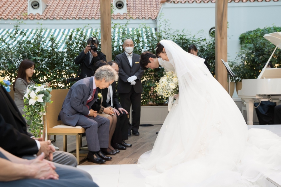 これまでの感謝の気持ちと、これからふたりで幸せになりますと思いを込めて深々とご一礼。