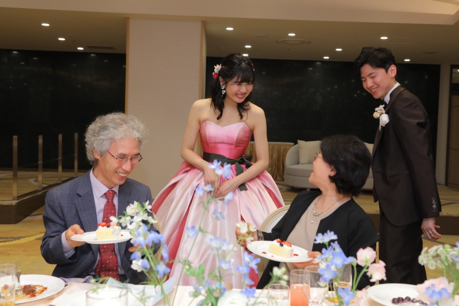 ご新郎のご両親にも喜んでいただけたようで、ご新婦とも笑顔で言葉を交わされます。