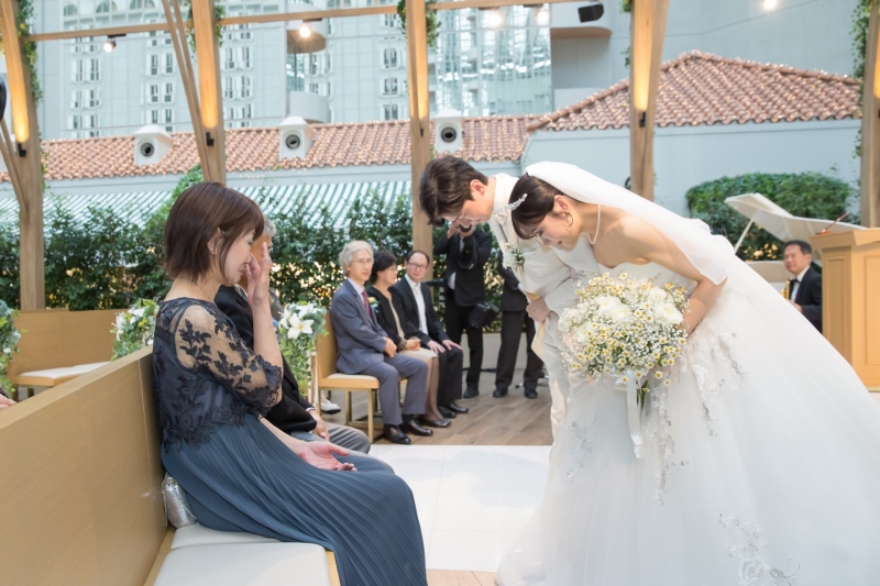 これまでの感謝の気持ちと、これからふたりで幸せになりますと思いを込めて深々とご一礼。