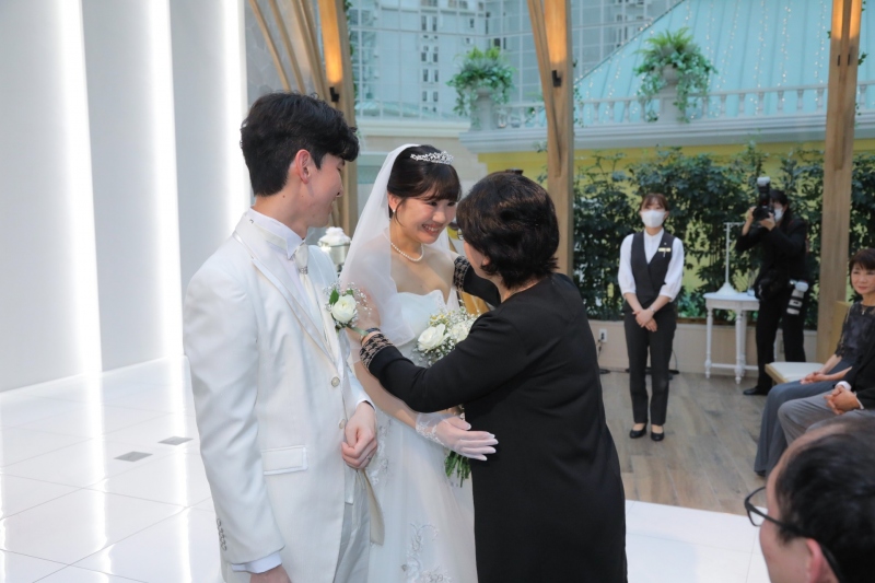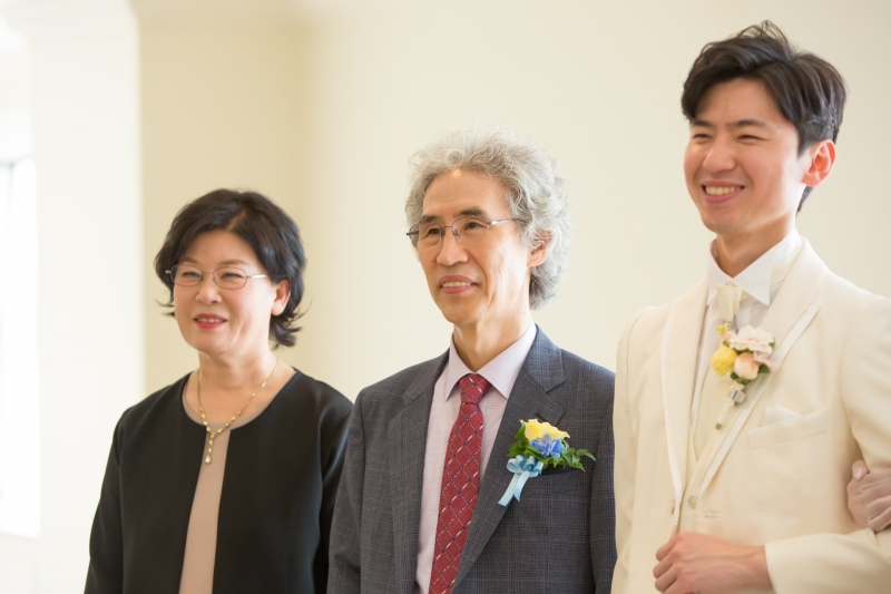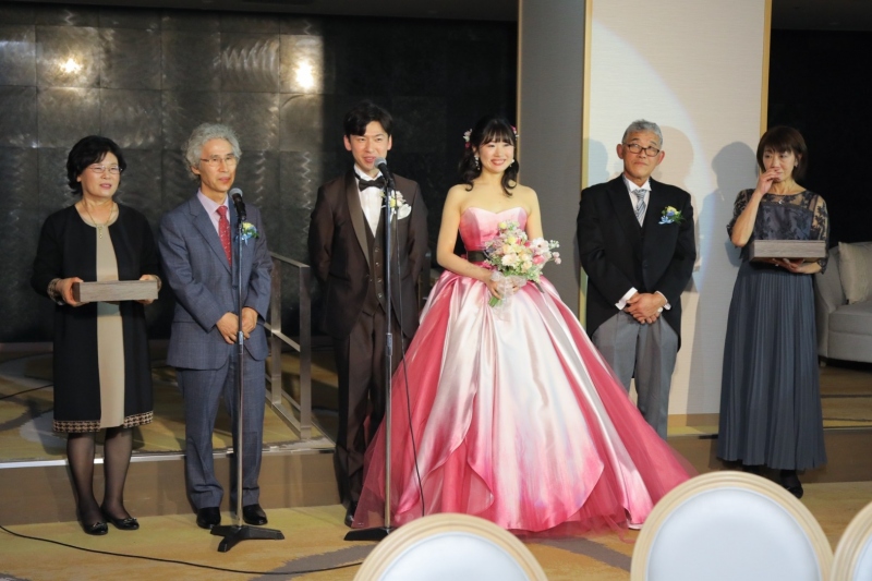 ご新郎のご両親にも喜んでいただけたようで、ご新婦とも笑顔で言葉を交わされます。
