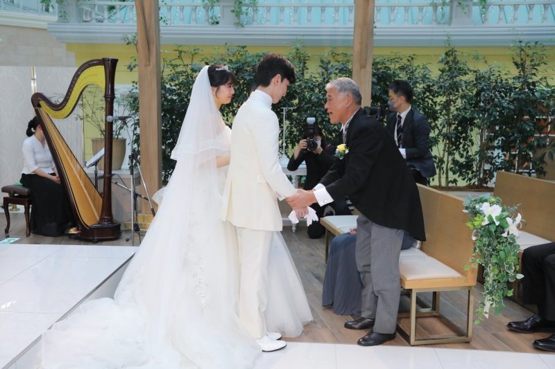 ご退場時には、親御様へご挨拶をするのが韓国の結婚式では欠かせない儀式と仰っていたご新郎。