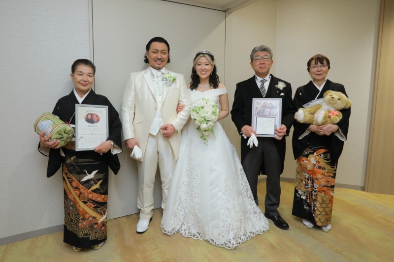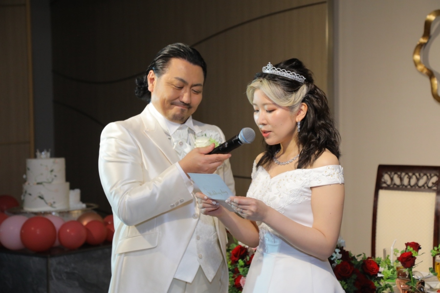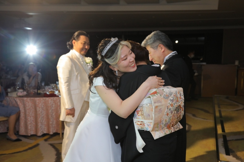 ご新婦からご両親への感謝の手紙では、これまで慈しみ育ててくれた親御様への思いを読み上げる中、お父様お母様も万感の思いで涙をぬぐうお姿に会場中が感動につつまれます。