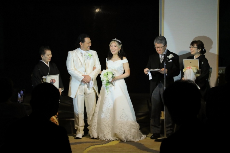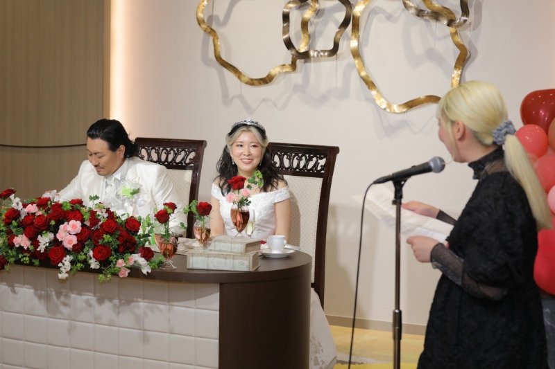 ご新郎の表情がゲストのさらなる笑いを誘い、ユーモアあふれるお姿と、その傍らでかわいく微笑む幸せの花嫁をカメラに収めます。
