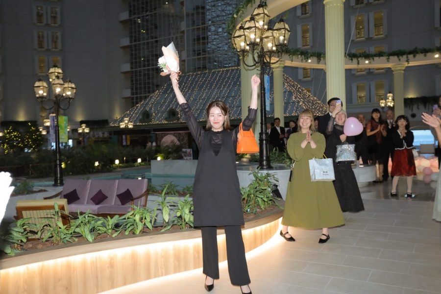おふたりのために駆け付けてくださったゲストの皆さまから「おめでとう!」と祝福の拍手をいただき、幸せいっぱいの笑顔がはじけるおふたり。
