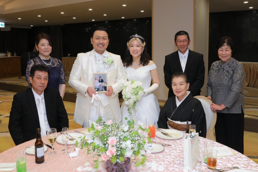 こちらは新郎ご親族のテーブルでのご家族写真。