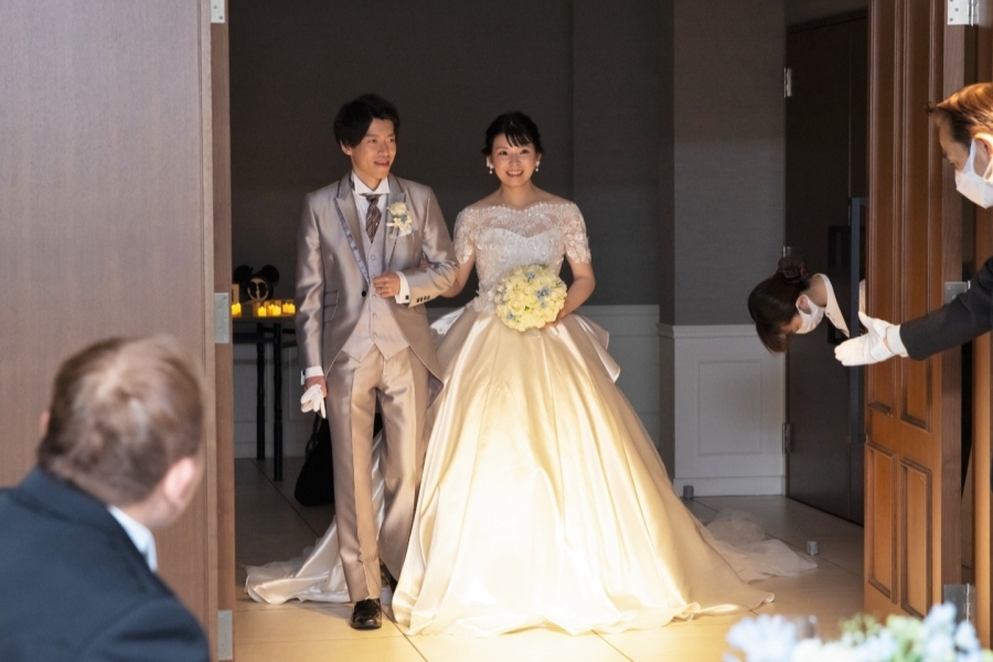 実は花嫁のウエディングドレスは2WAYで楽しめるデザインになっています。