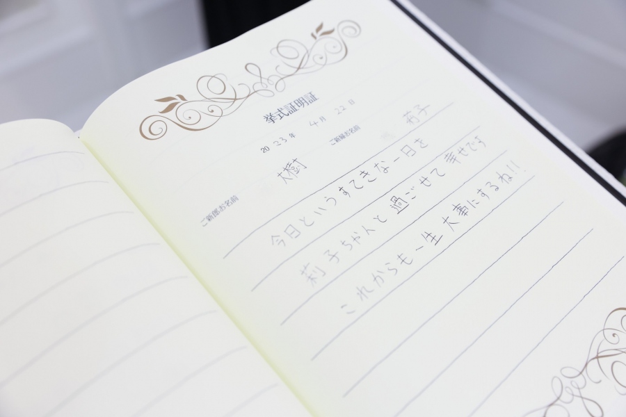 - ご新郎からの優しさあふれるメッセージ。これから始まる特別な時間がより楽しみになります。ログブックはホテルで大切に保管し、ご結婚式後もいつでもご覧になれます。