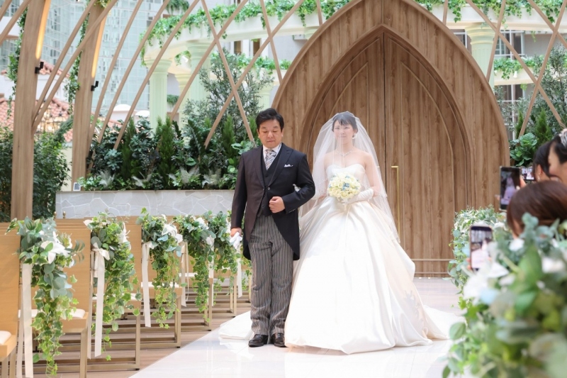 試着を重ねる中で運命の一着に出会われ、当日はご新郎や大切なご家族、ご友人の皆さまへ美しい花嫁姿を披露なさいました。