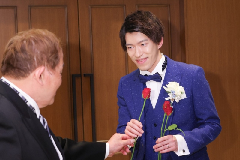 ご新郎はご両親と一緒にご入場なさり、ジャケットセレモニーを。