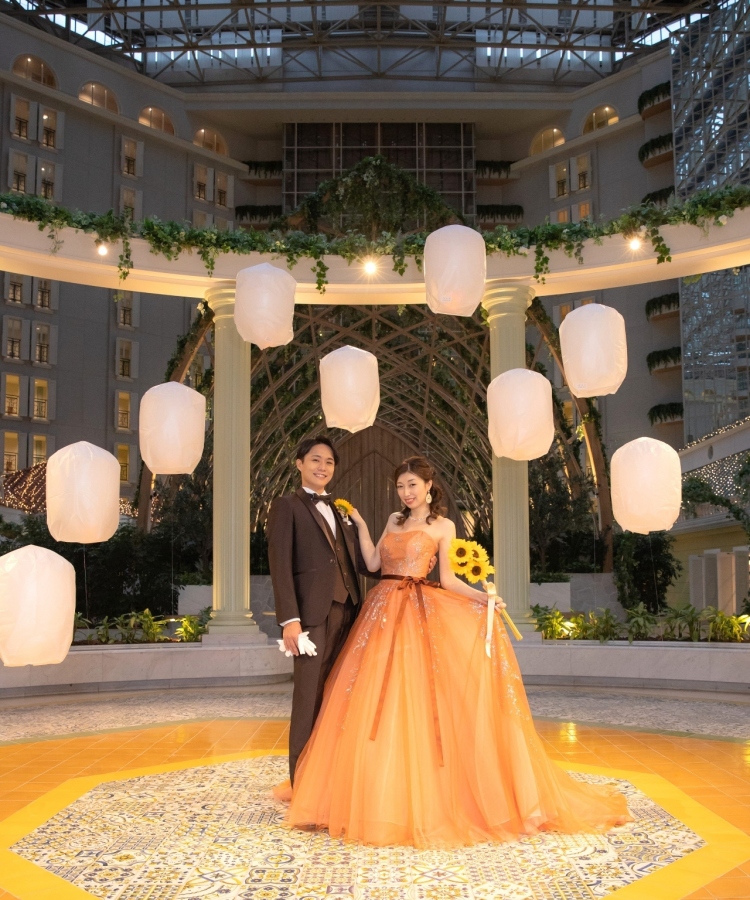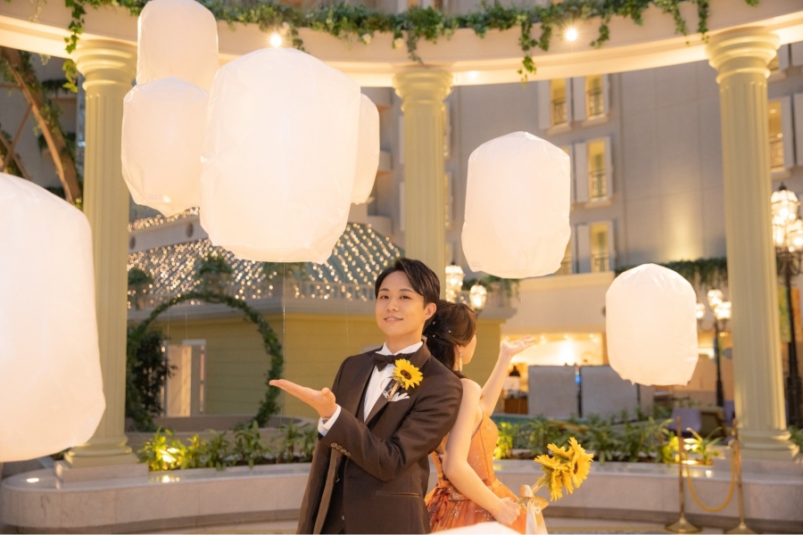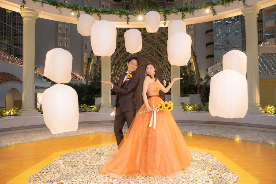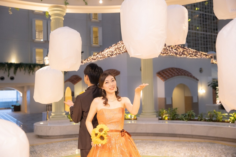 アトリウム中央のGazebo(ガゼボ)で、ランタンを浮かべた幻想的なショットを撮影なさいました。