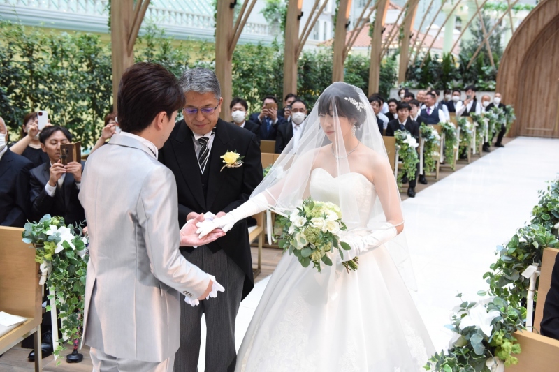 - 神秘的なベールダウンセレモニーにはゲストも感動。