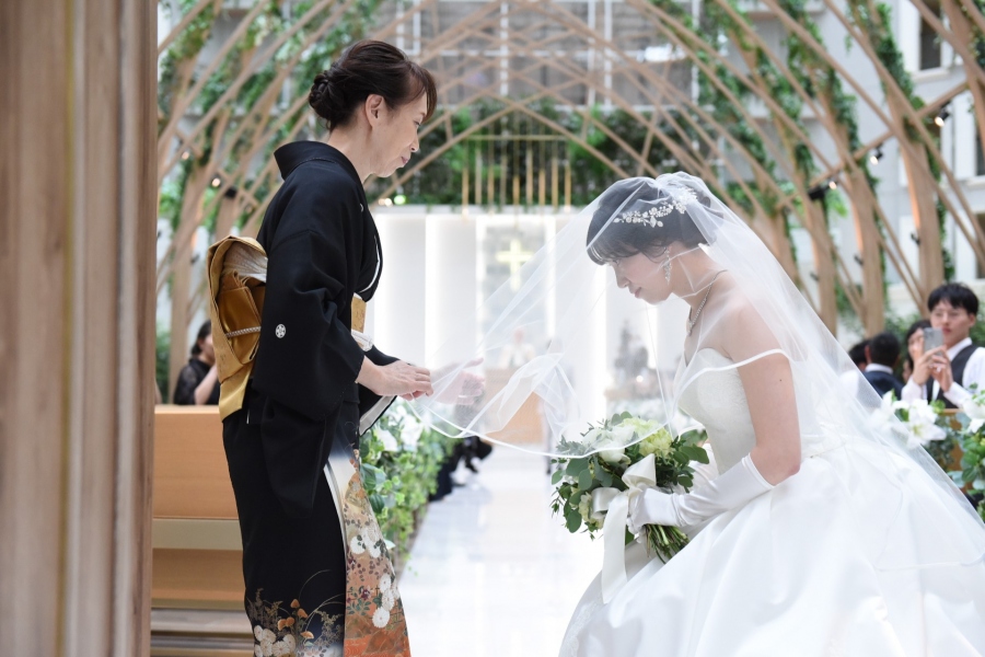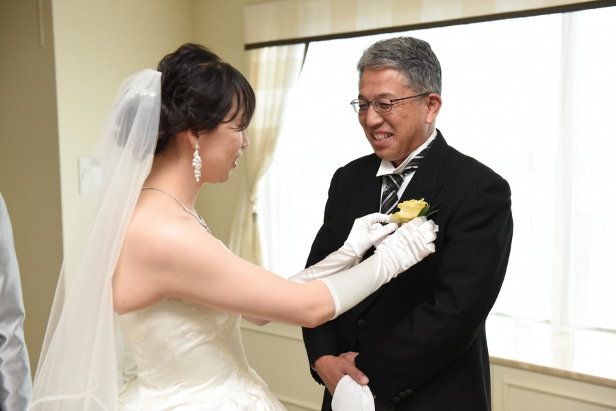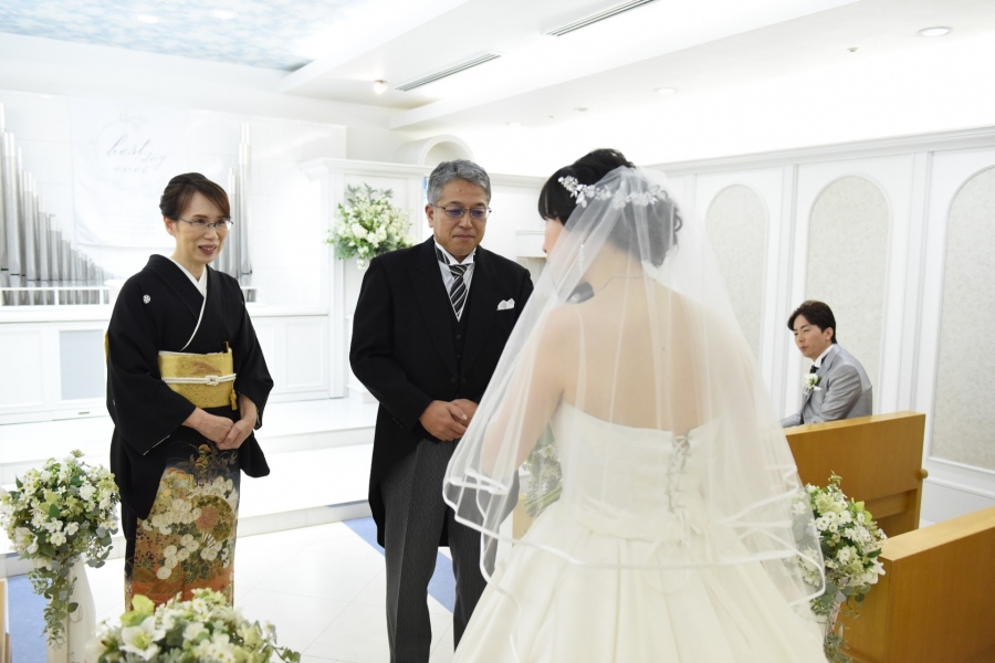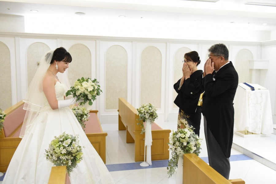 大切に大切に育てたお嬢様が美しい花嫁となった喜びに目頭が熱くなる親御様。