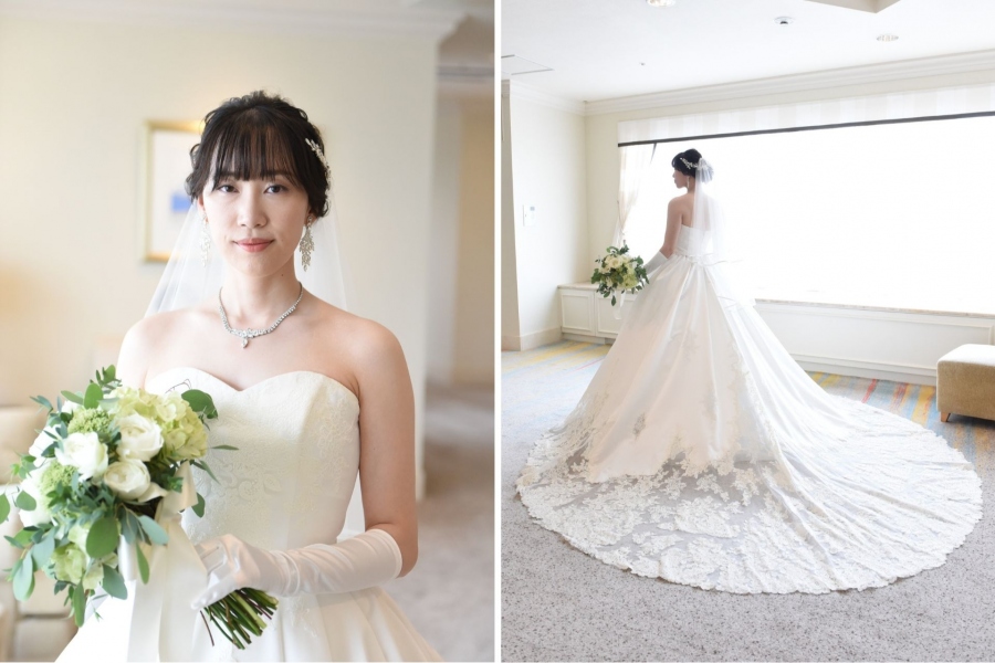 ご新郎もご両親様もその気品あふれるご様子に感激なさった正統派ウエディングドレス姿のご新婦。