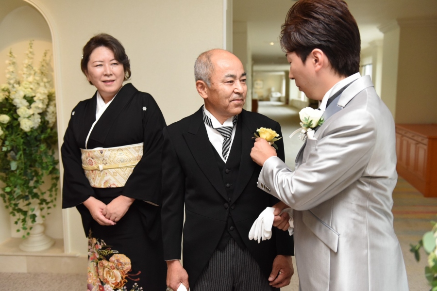 何よりの親孝行となるひとときをご新郎も傍で見守ります。
