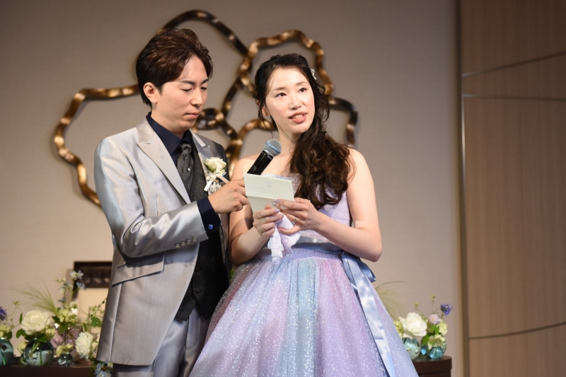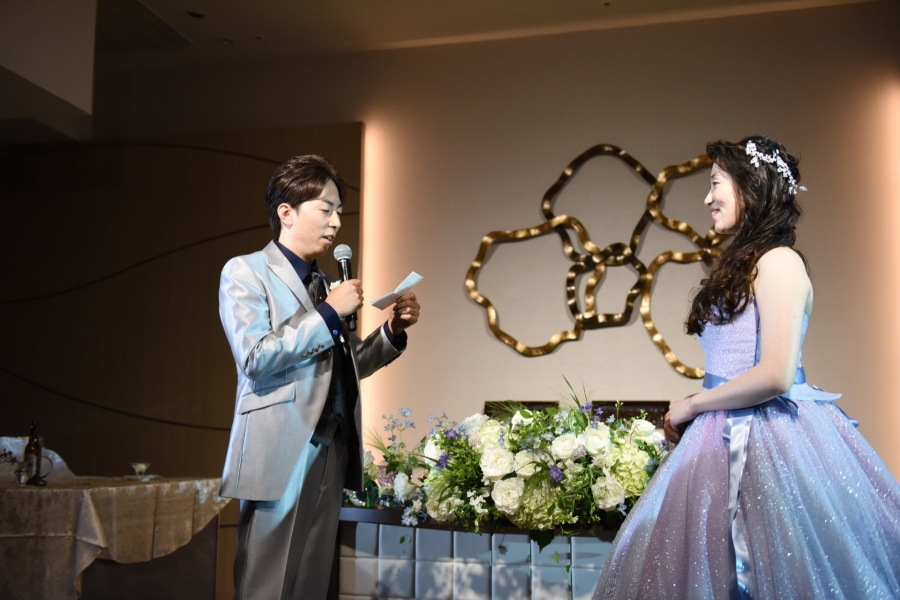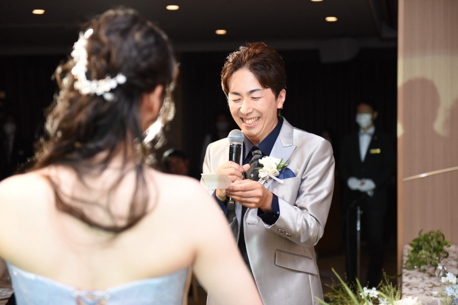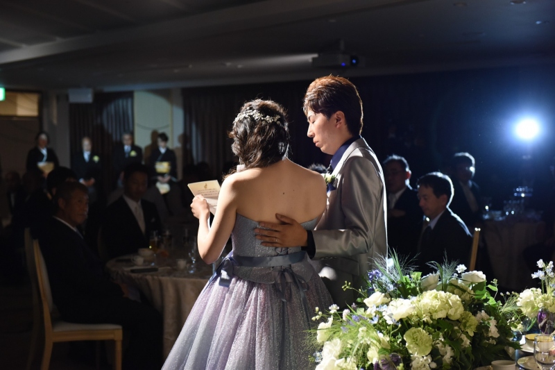 ご披露宴がお開きへと進む中、ご新婦からご両親様への手紙朗読に進むと思いきや、ご新郎からのサプライズでご新婦への思いを込めた手紙を読み上げられました。