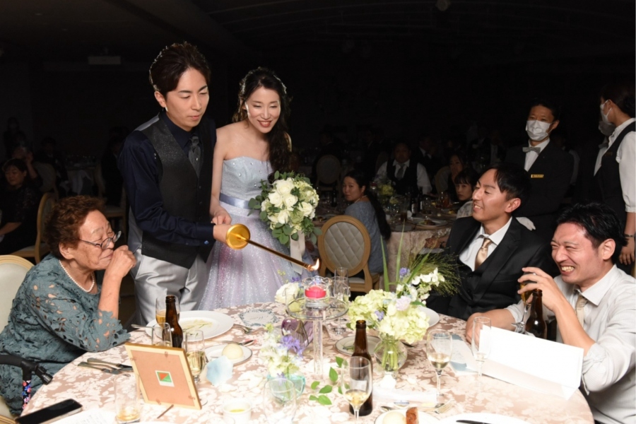 お色直しでのテーブルラウンドはキャンドルサービスで。