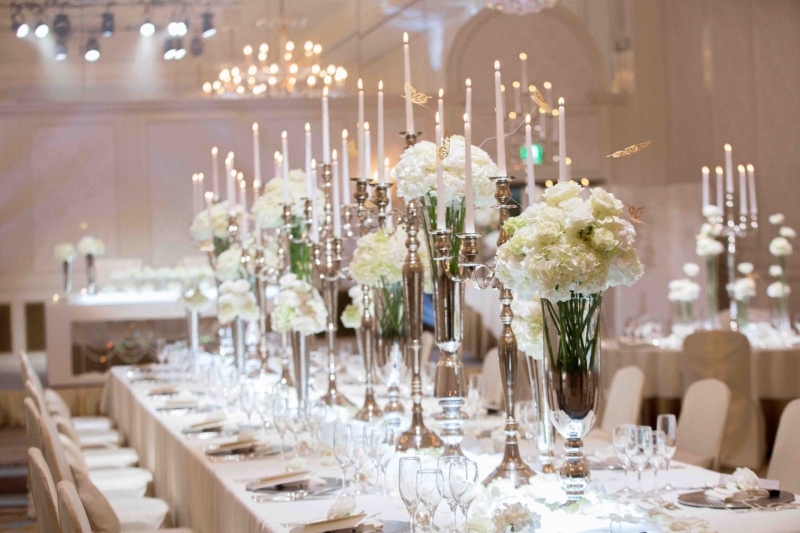 映画の始まりをイメージした蝶々が飛ぶ、白とゴールドのコーディネートです。