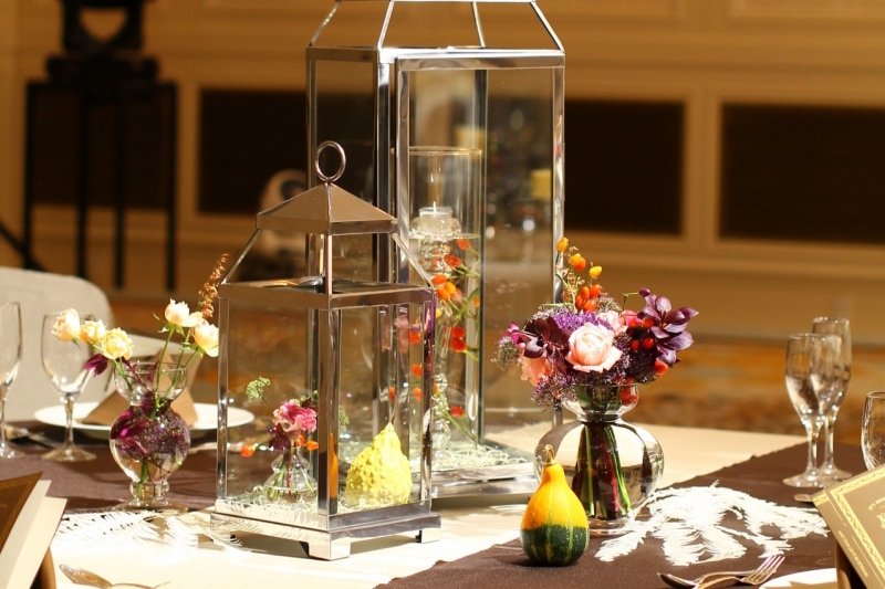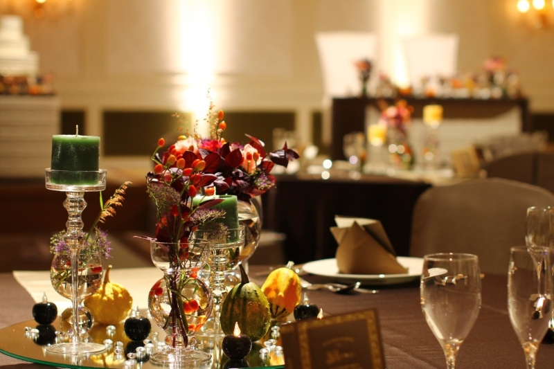 カボチャやキャンドル、トウガラシなど、中央に置くものはテーブル毎にチェンジ。