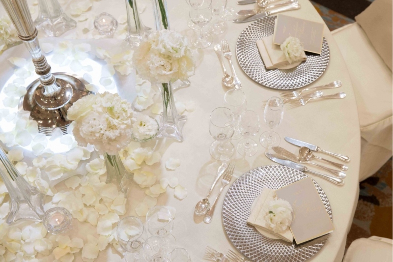 テーブルには花びらを散らして、エレガントさも演出しています。