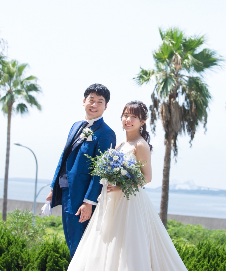 - 夏空に晴れ晴れとしたおふたりの笑顔が映えます。