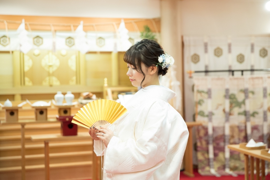- 神前式では広げることのない扇も、フォトウエディングでは華を添えるアイテムとして活躍します。