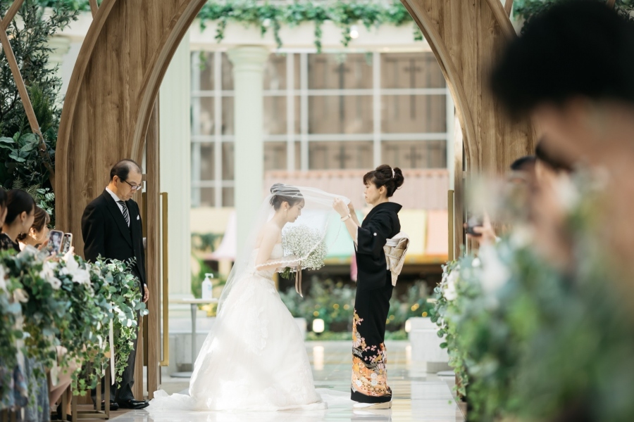 - お母様のベールダウンセレモニーでは神聖な雰囲気が漂います。