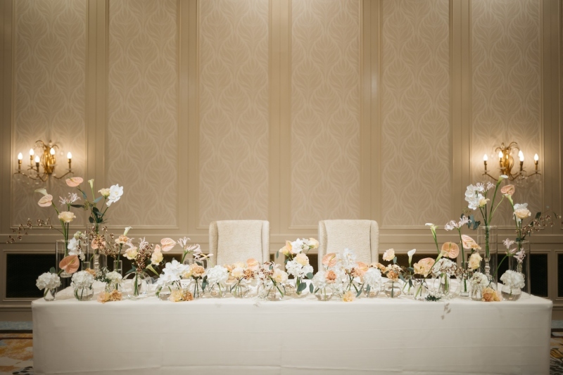 - 思い思いのお花で、オリジナリティあふれる華やかなゲストテーブルに。