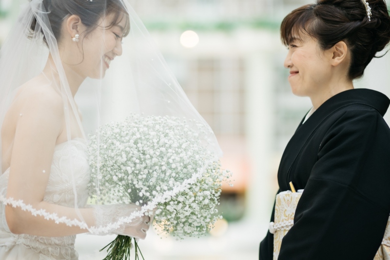 - お母様のベールダウンセレモニーでは神聖な雰囲気が漂います。