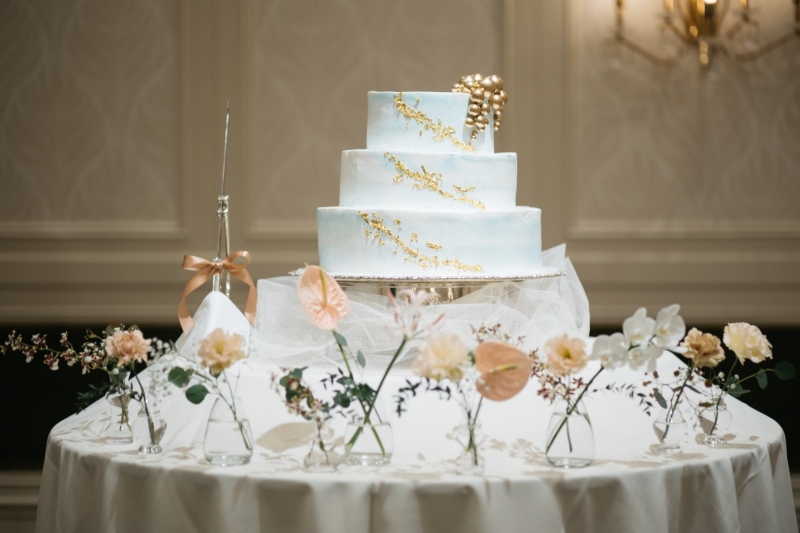 ウエディングケーキ越しのファーストバイト写真もとっても素敵ですが、反対側から撮影すると、ゲストの表情や会場の雰囲気もばっちり写真に収められます。