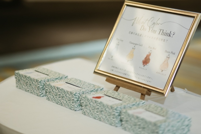 - 会場のコーディネートと同系色で統一したウェルカムスペースもおしゃれ。