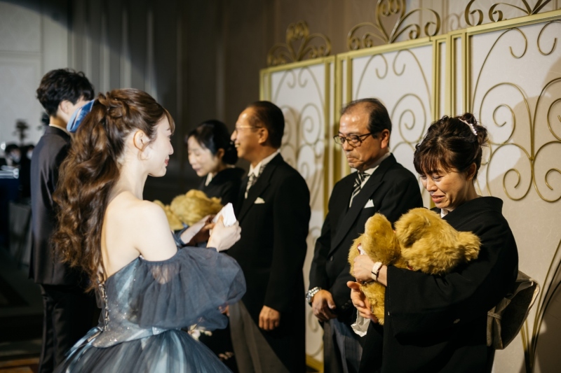 - サプライズでお色直しのエスコートをお願いされたおじい様とおばあ様。 突然のお願いに驚きつつも、立派に成長したお孫様の姿に喜びもひとしおです。