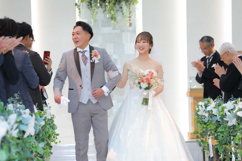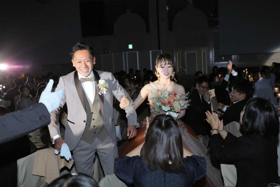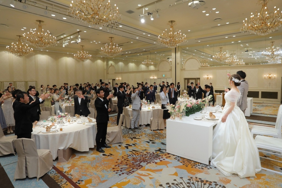 - 新郎新婦退場時にも大きな拍手が贈られ、皆様がおふたりの幸せを願い、お祝いしてくださいました。