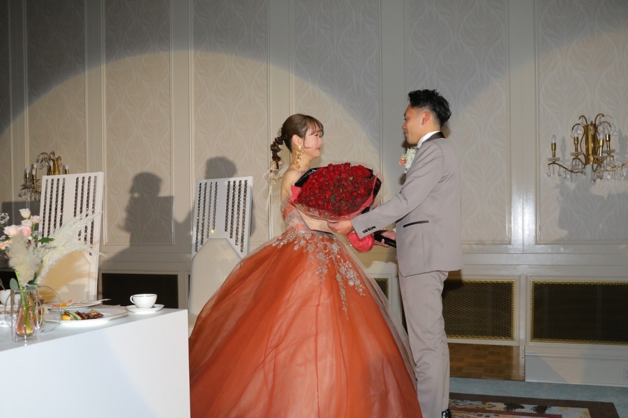 ご新郎からのロマンティックな贈り物に感激のご新婦を、さらにお父様とお母様からの愛情あふれるサプライズが待っていました。