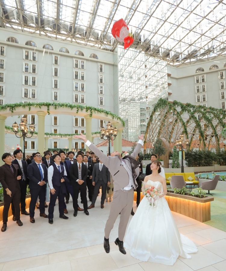 - 広大なアトリウムならではの、ゲスト全員との記念撮影。