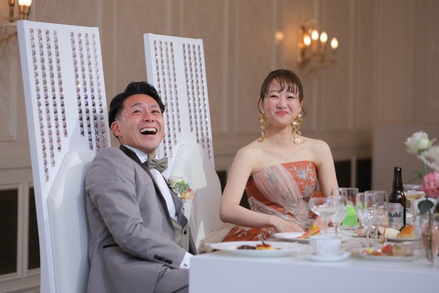 大切な方々を自分たちらしくおもてなししたいと、プランナーと打ち合わせを重ね、当日はユーモアとサプライズ満載の笑いのたえない結婚式となりました。