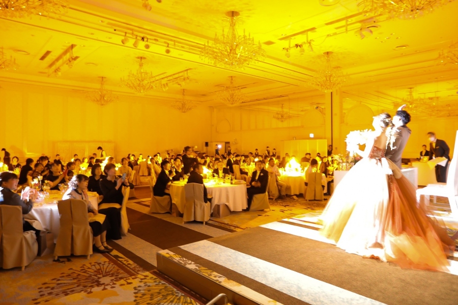 - 100名様を超えるゲストでもゆったりとお過ごしいただけるグランドボールルームで、おふたりのご披露宴がスタートします。