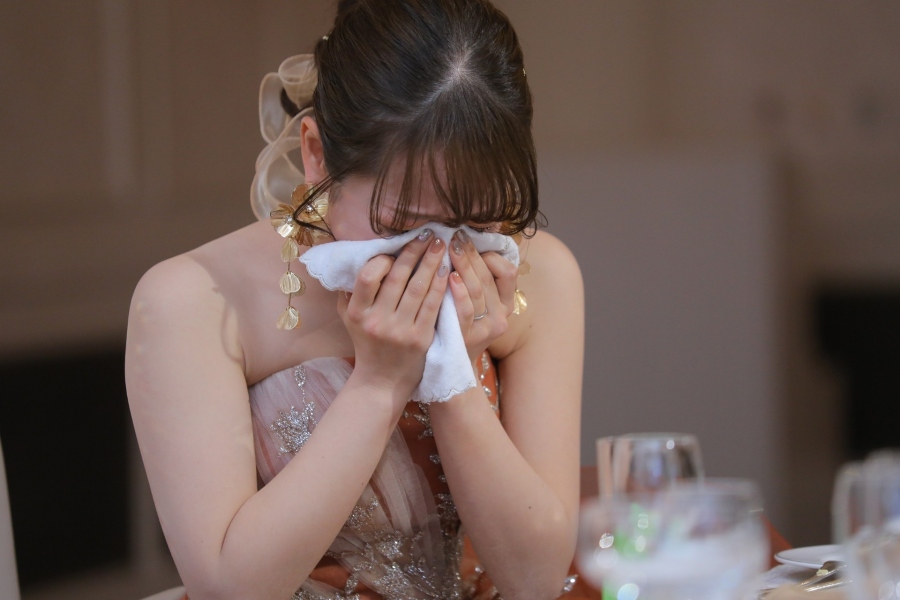 そしてスクリーンにお父様と同じく結婚式を楽しみにしていた天国のお母様からの手紙が紹介されると、ご新婦の目には涙があふれます。