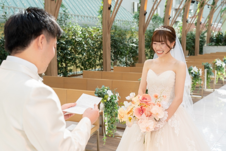 アトリウムチャペルで行われたファーストミートでは、改めてお互いへの感謝と愛を込めてお手紙を送り合い、気持ちも新たに挙式へと臨まれました。