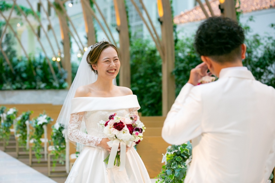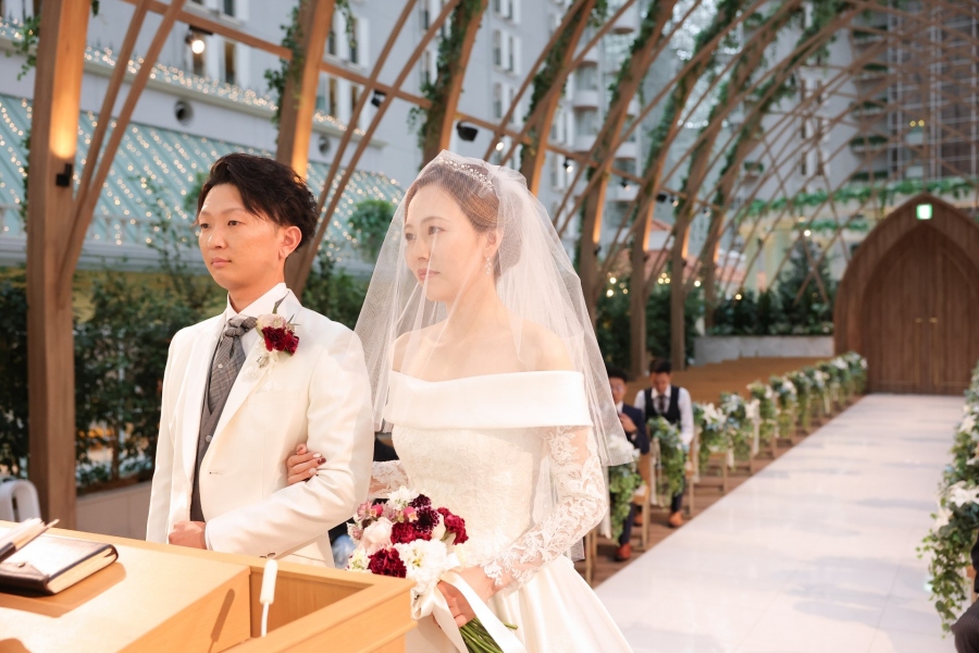 そしていよいよ、ご新婦が一目惚れしてくださったというアトリウムチャペルで、ご家族の皆様に見守られながらの挙式が始まります。
