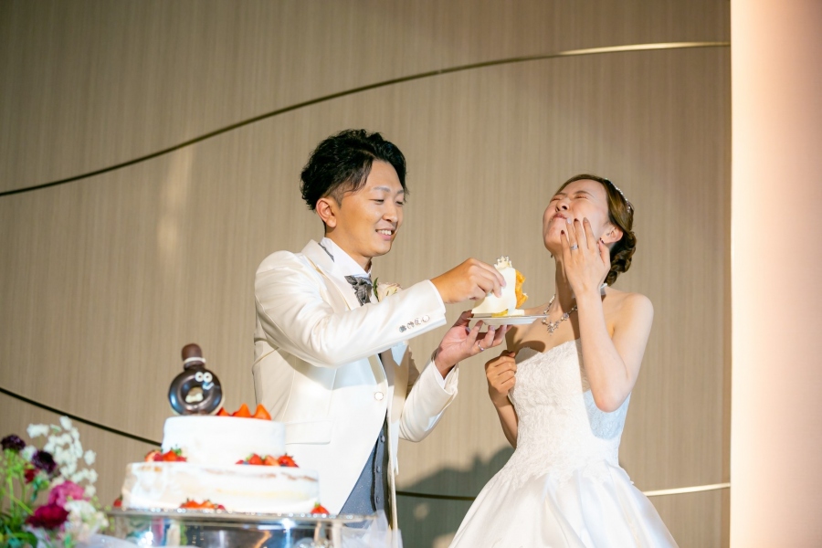 - ファーストバイトはケーキトッパーのドーナツをパクッ!この後、親御様やゲストのお子様方にはケーキでサンクスバイトをなさいました。