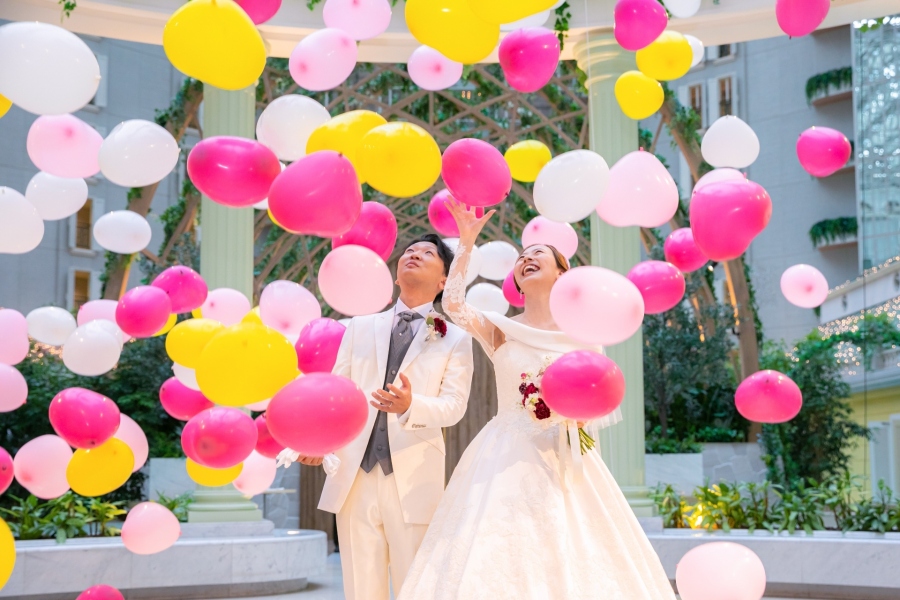 ホワイト・ピンク・ローズ・イエローのバルーンがゆっくりと舞い降り、皆様を優しくつつみこみます。