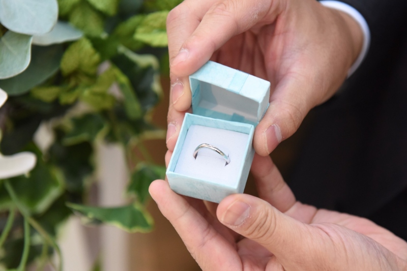挙式スタイルは人前式です。入口で小さなBOXを配り、指輪が入っている方にリングの使者として指輪交換をお手伝いいただくサプライズ演出も!